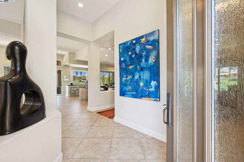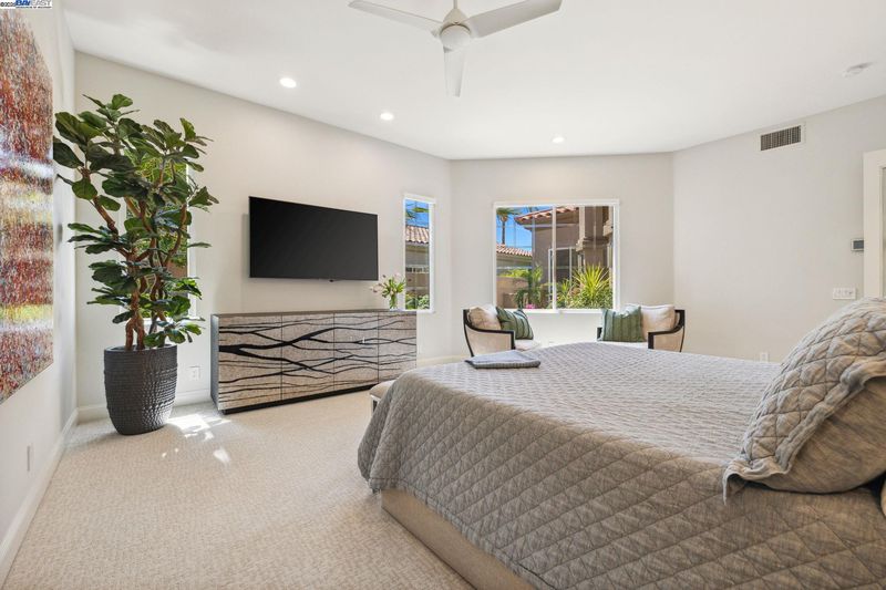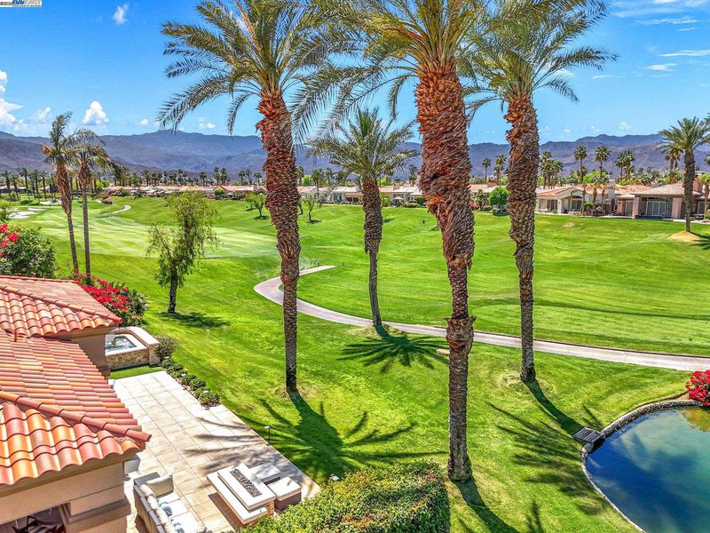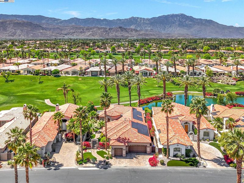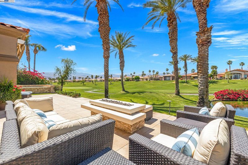GOLF COURSE LIVING AT ITS' FINEST! Nestled in the heart of Indian Ridge Country Club, this desert home is on the club's signature golf hole. Enjoy the quiet neighborhood and stunning colorful views The Santa Rosa and San Jacinto Mountain sunsets. An Outdoor Oasis: Capturing the custom designed fire-pit area, rejuvenating saltwater spa with high intensity jets, and barbecue area, your patio is set to stage many memorable gatherings of family and friends for years to come. Exceptional Indoor Living: Expansive glass doors open seamlessly to blend luxury with nature, accentuating the 12-foot ceilings. Warm modern living spaces have been professionally designed by Newport Beach Restoration Hardware. Chef-Inspired Kitchen: Cook like a chef with state-of-the-art appliances, custom cabinetry, and generous kitchen pantry. Enjoy the formal dining area that invites intimate gatherings or family celebrations. Three Ensuite Bedrooms: Offer separate living quarters to enjoy privacy and rest. Primary and powder baths feature Toto washlets. For your year-round environmental comfort, the home boasts: • A 42-panel solar system (Owned) • Three new, large capacity air conditioners • Whole home air purifier GOLF MEMBERSHIP AVAILABLE - no wait. Plus Tennis, Pickle Ball, Bocce, Fitness Center