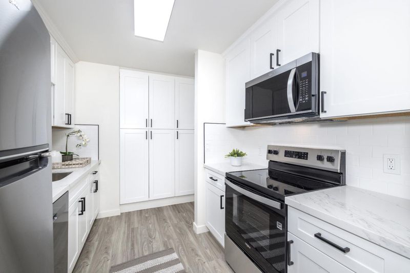 - Countertop - Quartz, Dishwasher, Exhaust Fan, Garbage Disposal, Microwave, Oven Range - Electric, Pantry, Refrigerator
