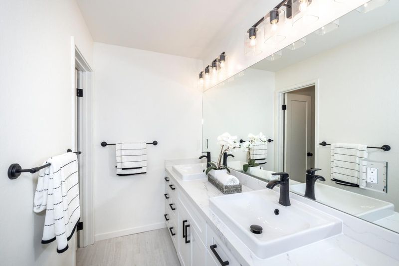 - Double Sinks, Shower over Tub - 1, Solid Surface, Tile, Updated Bath