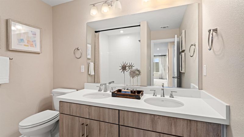 This beautiful model home features a generous dining nook, an airy great room and a well-appointed kitchen with a center island. You'll also appreciate a convenient main-floor bedroom and bath. Upstairs, enjoy a spacious loft, a laundry room with plentiful storage and two bedrooms with a shared bath. Retreat to the lavish owner's suite, complete with a private bath and an expansive walk-in closet. This home also includes tile flooring, added windows and quartz countertops throughout! Home has been virtually staged