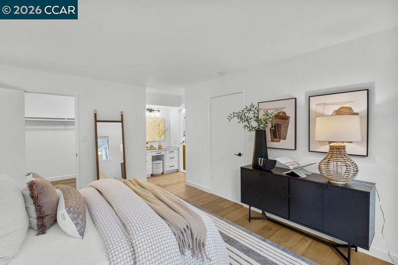 Beyond a private gate, this beautifully updated single-level home sits on a rare flat lot surrounded by mature oaks and hillside views. The light-filled interior features terracotta tile floors and seamless living and dining spaces with fireplaces and French doors opening to the patio. The updated kitchen offers quartz countertops, stainless steel appliances, and crisp cabinetry. Spacious bedrooms feature wide-plank wood flooring, and remodeled bathrooms showcase modern tile, glass showers, and warm wood vanities. The expansive lot offers room for expansion or potential ADU (buyer to verify). Located in desirable Tice Valley, close to shopping, schools, parks, and trails.