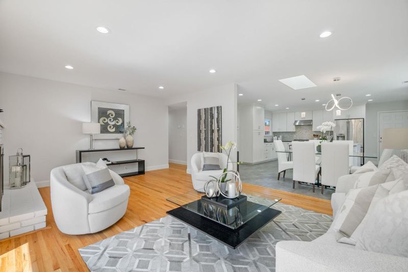 Whole home renovation with bright & open floorplan all on one level. Located at the end of cul-de-sac with maximum curb appeal & minimal traffic. New roof & gutters, new HVAC including central A/C, retrofitted with permit, copper piping throughout, refinished hardwood floors. Spacious living room features recessed lights, fireplace, wide sliding doors to the rear yard. Formal dining area with new light fixture and skylight, open to the living room and kitchen. Spacious chef's kitchen features plentiful cabinet and counter space, large center island with counter seating, stainless steel appliances include gas range with 5 burners and 2 ovens. Primary suite has en suite bath with vessel sink and shower with track-hung glass doors plus rain and handheld sprays. Adding to the appeal: whole-house fan, attached 2-car garage with epoxy floor, washer/dryer, hot water re-circulation pump. Rear yard invites outdoor enjoyment with paver patio, lawn, and enjoy your own orchard of fruit trees: pink pomegranate, Fuyu persimmon, Mandarin orange, orange, lemon, 2 type of apple trees. Close to downtown Campbell, Santana Row, Valley Fair, Pruneyard, commuter routes. Pedestrian/bicycle bridge to Hamann Park with tennis courts, play area, baseball/soccer fields at your doorstep. Welcome Home